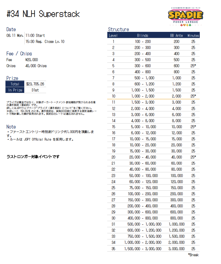 | 12/16(火) | 15:30 | 【♠︎SPADIE】Daily NLH 2K | 秋葉原カジノクエスト |