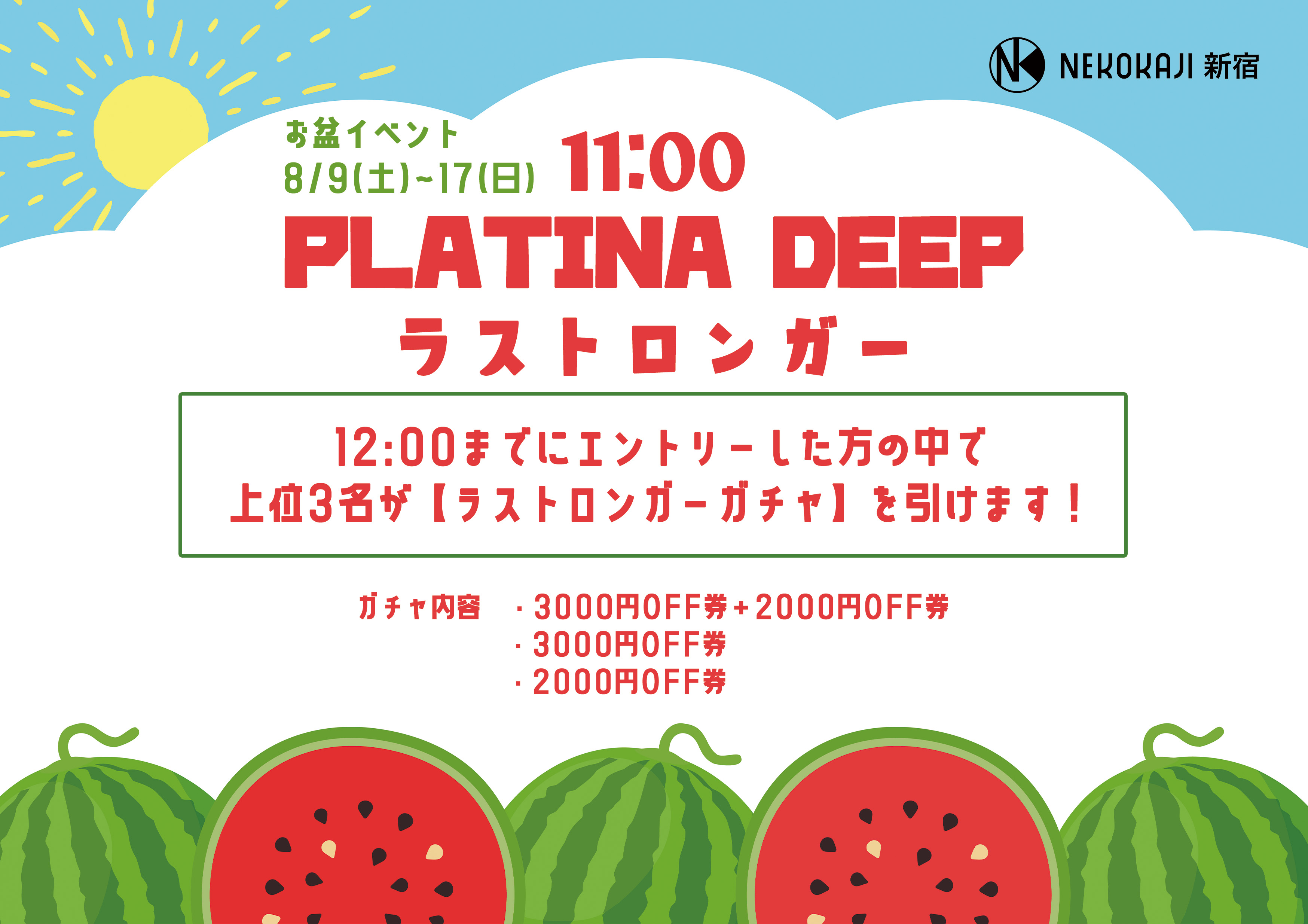 ♡PLATINA DEEP・・・土日祝11:00〜開催されるトーナメントに無料でエントリーできます