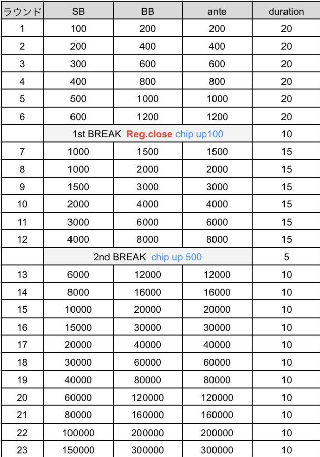 ※TD権限によりタイマースタート、ブラインド、ストラクチャーの変更となる場合がございます。
