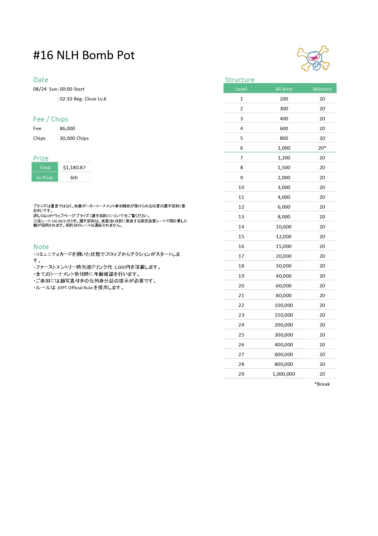 | 店舗名 | JAPAN OPEN POKER TOUR |