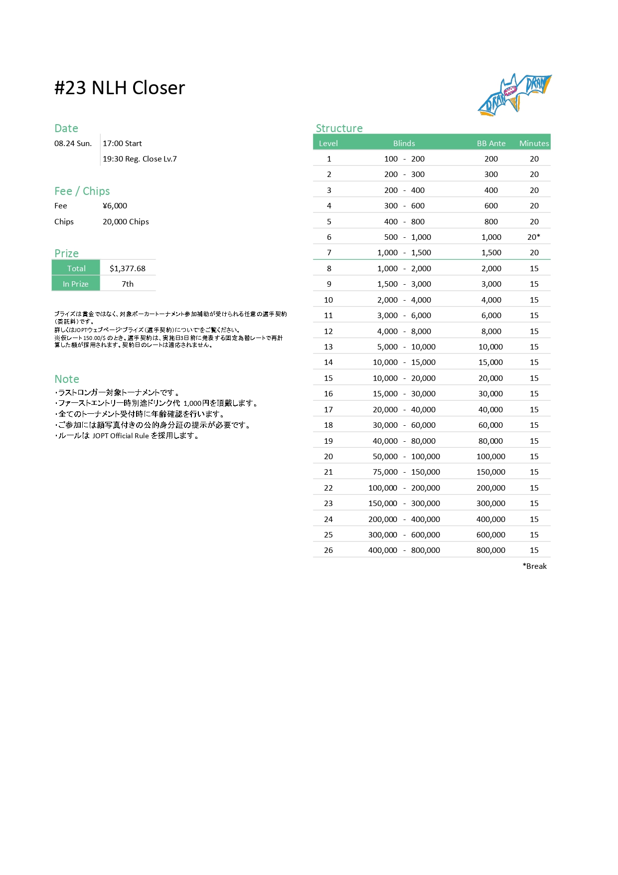 | 店舗名 | JAPAN OPEN POKER TOUR |