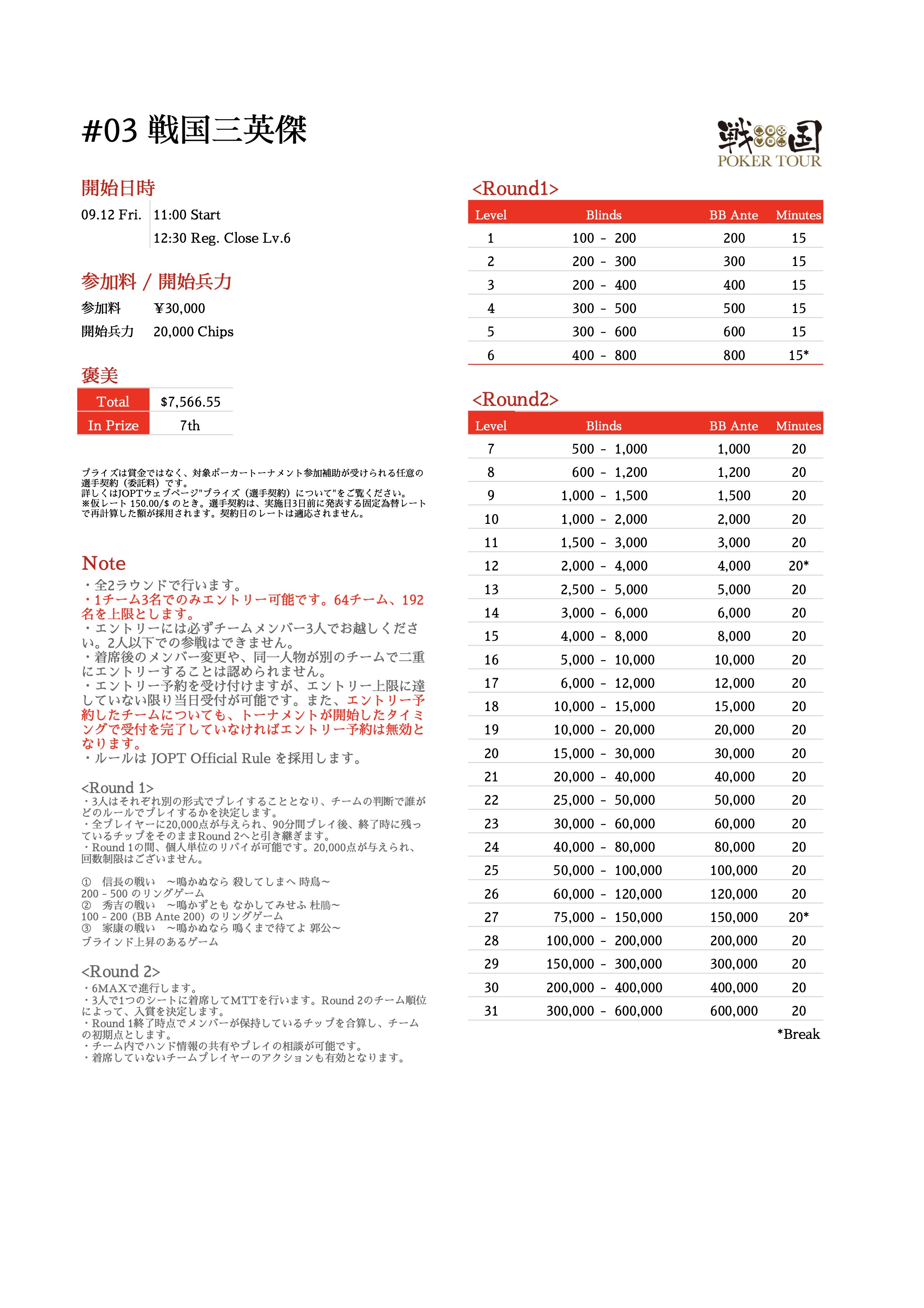 3. Main Event参加プレイヤーとサイドイベントの上位プレイヤーは、氏名を関連するサイト等で公開することに同意する。
