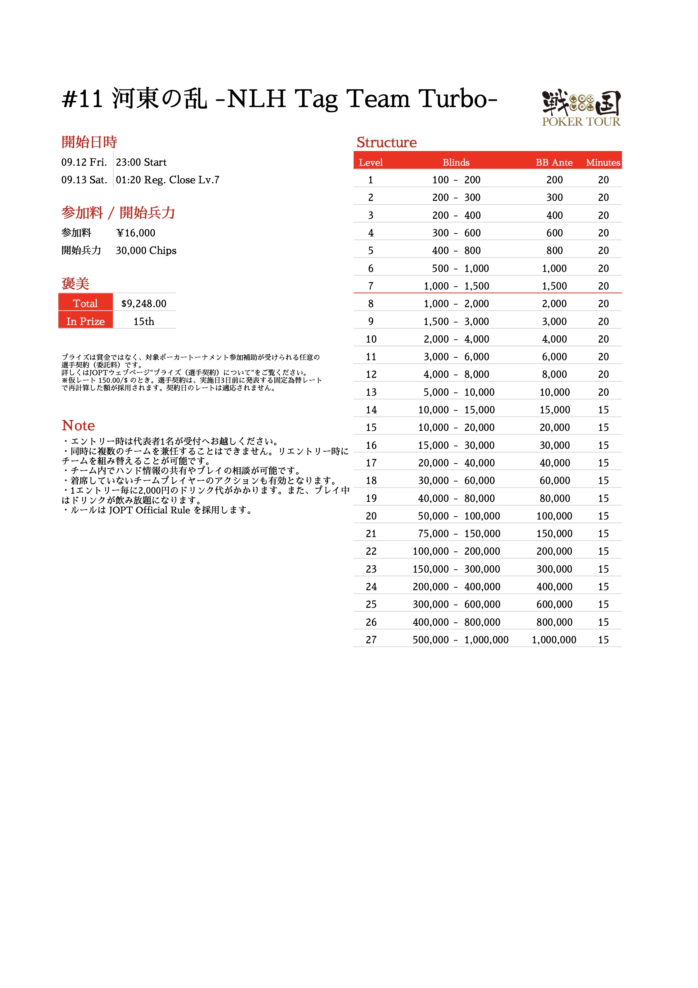 3. Main Event参加プレイヤーとサイドイベントの上位プレイヤーは、氏名を関連するサイト等で公開することに同意する。