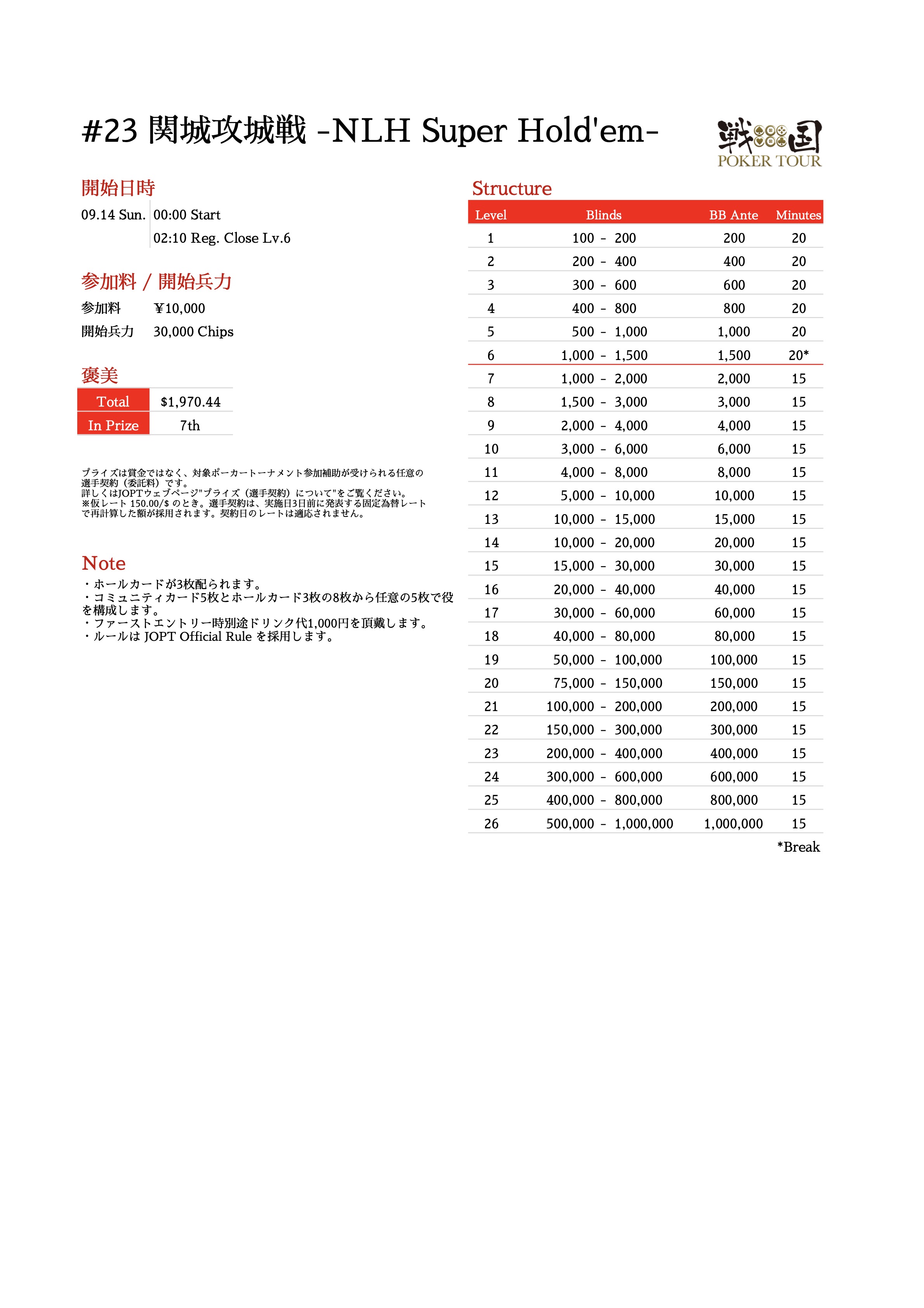 | 店舗名 | JAPAN OPEN POKER TOUR |