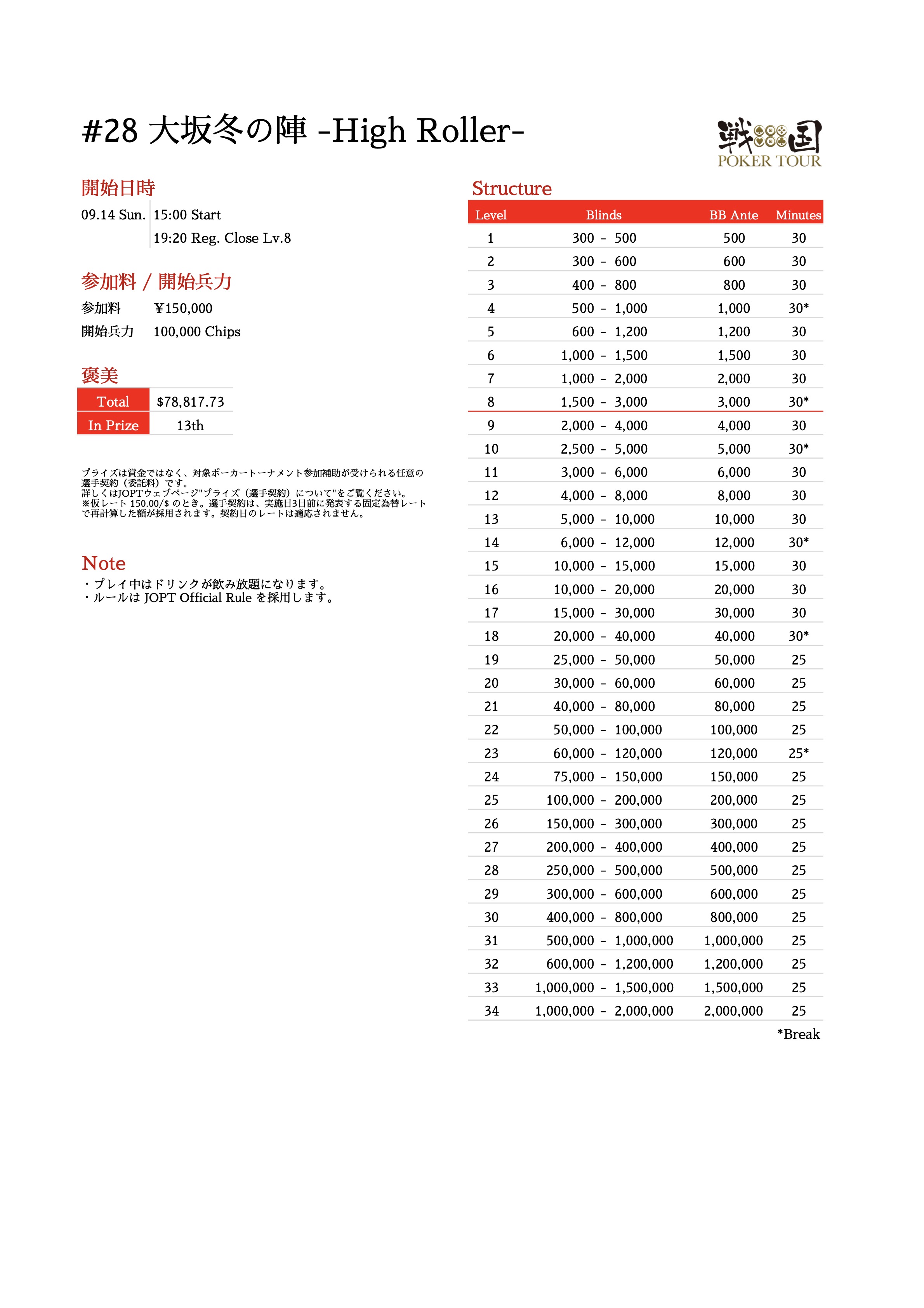 | 店舗名 | JAPAN OPEN POKER TOUR |