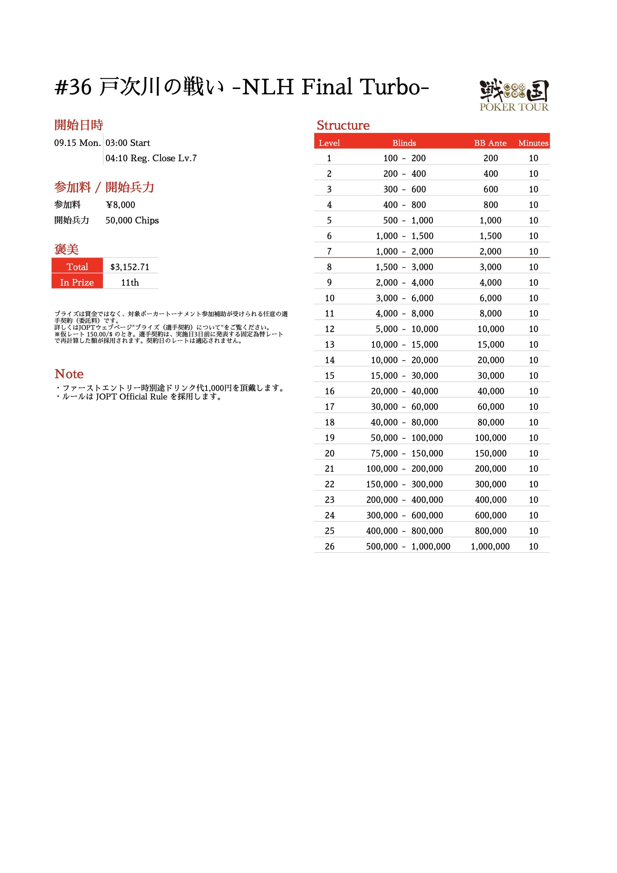 | 店舗名 | JAPAN OPEN POKER TOUR |