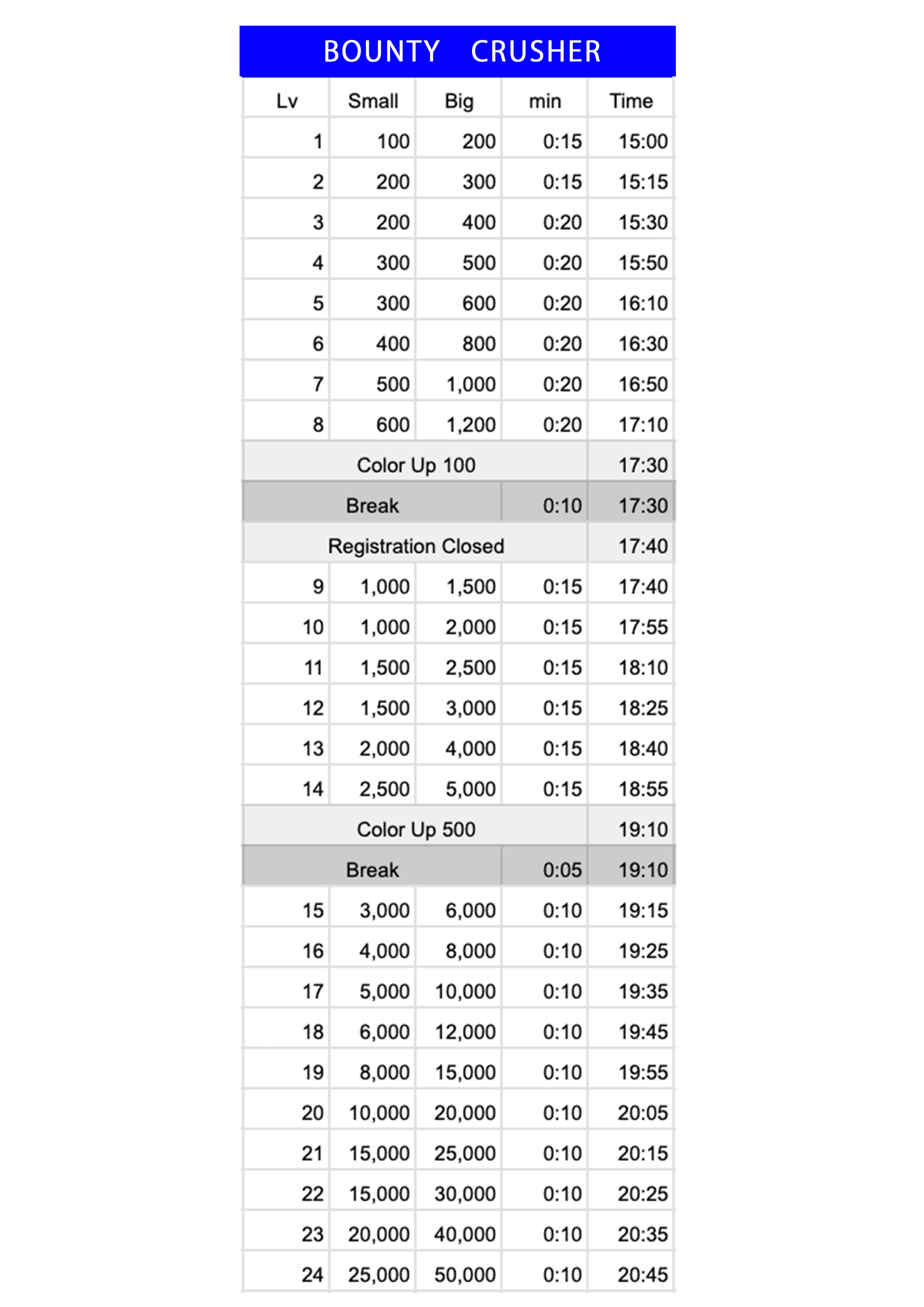 | ゲーム | 30,000点 / ノーリミット / テキサスホールデム / 20Min. / ポイントなし |