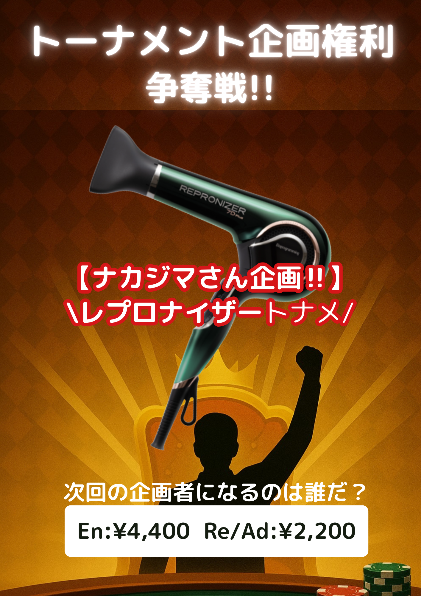 翌月に開催されるトーナメントの企画権利を獲得できるイベントです!!