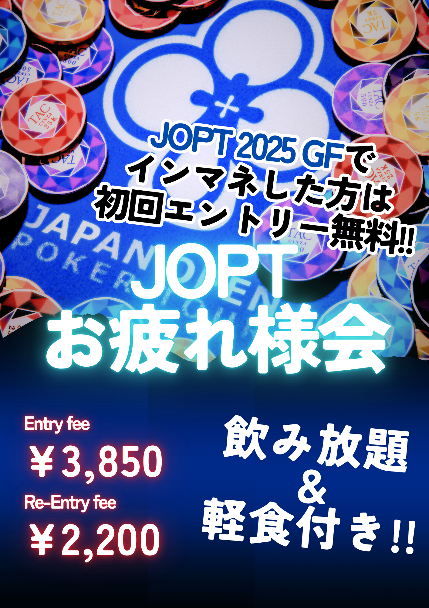JOPT 2025 GFでインマネしたプレイヤーは初回エントリーが無料になっちゃいます!!