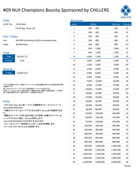 | 店舗名 | JAPAN OPEN POKER TOUR |