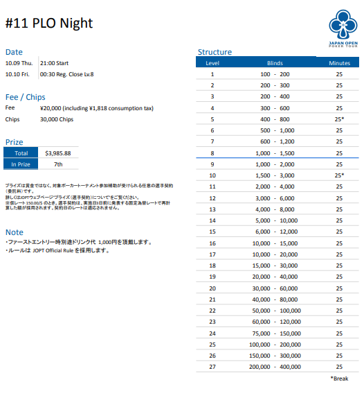 | 店舗名 | JAPAN OPEN POKER TOUR |