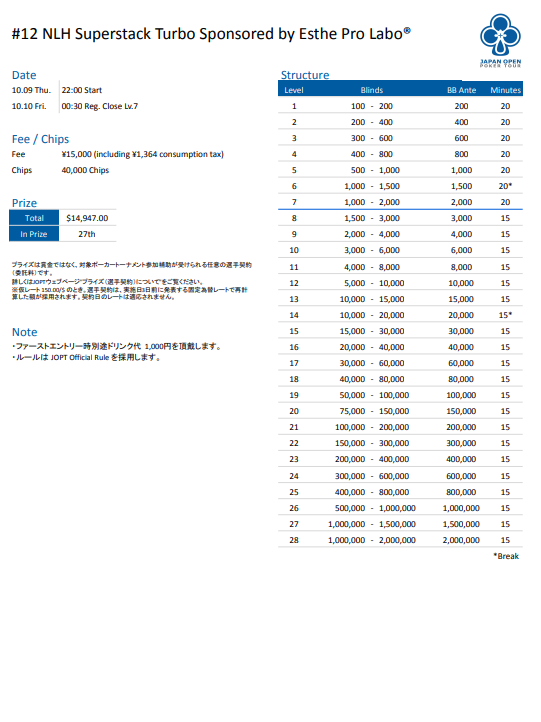 | 店舗名 | JAPAN OPEN POKER TOUR |