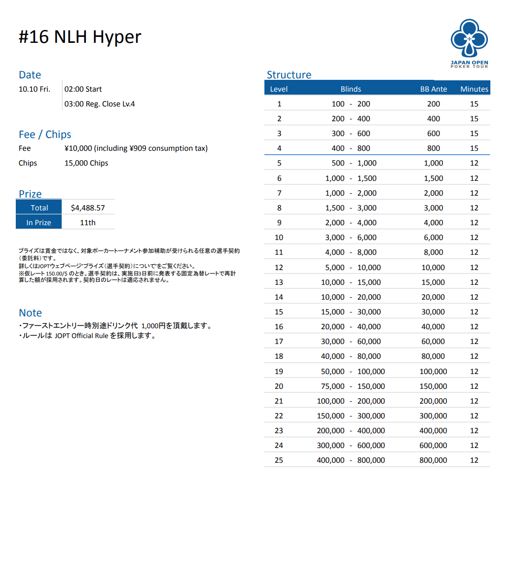 | 店舗名 | JAPAN OPEN POKER TOUR |