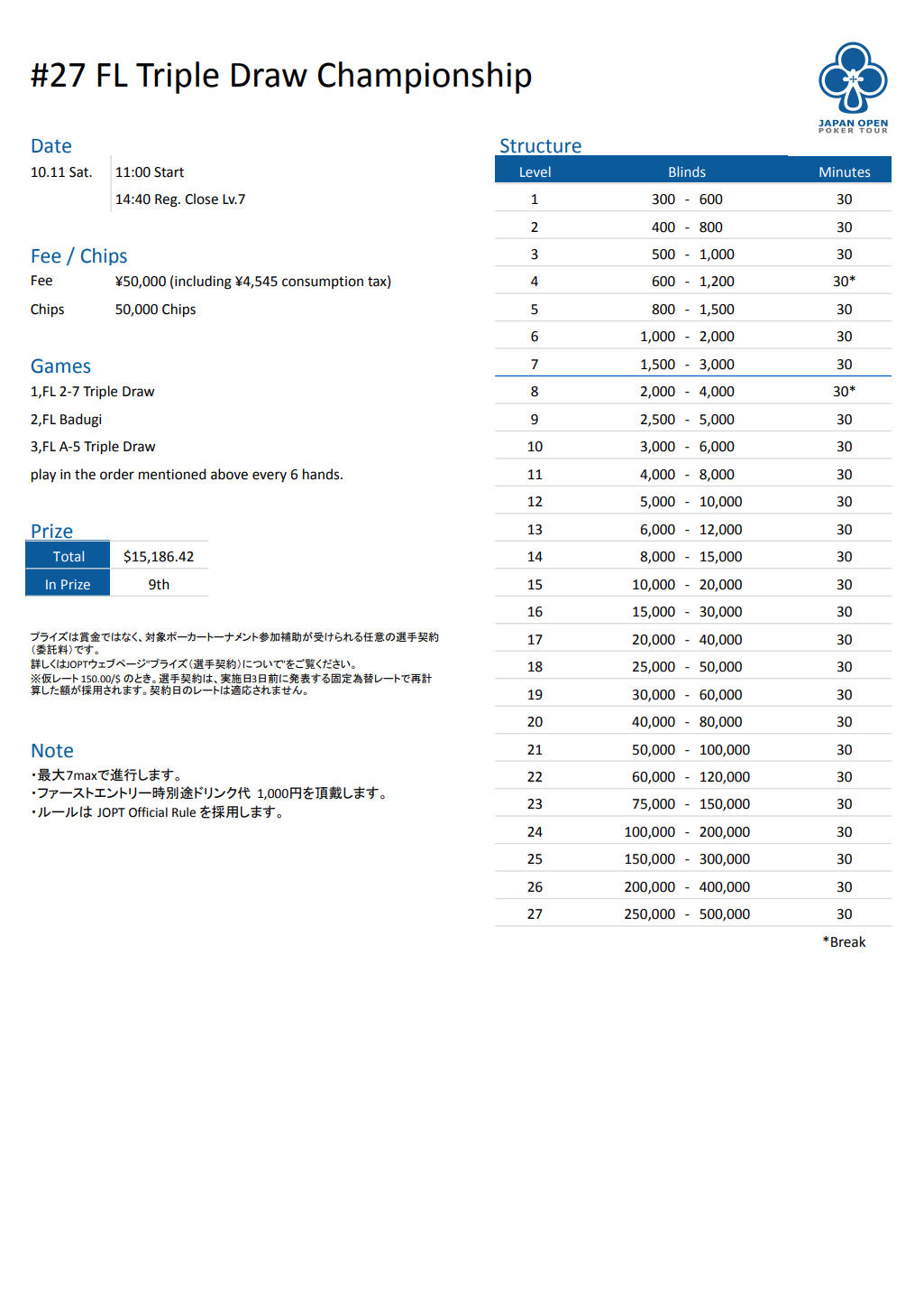 | 店舗名 | JAPAN OPEN POKER TOUR |