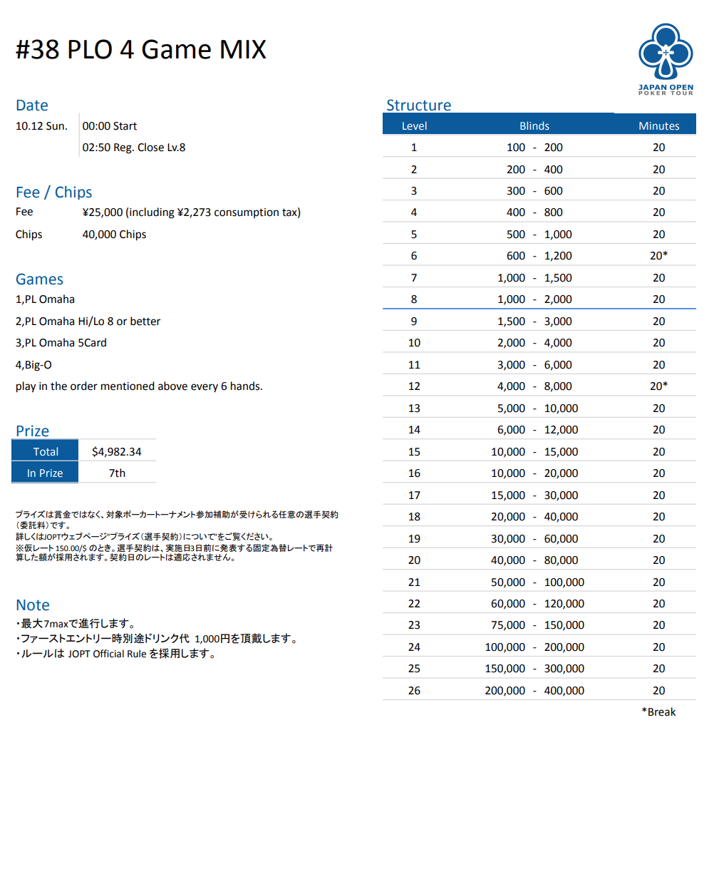 | 店舗名 | JAPAN OPEN POKER TOUR |