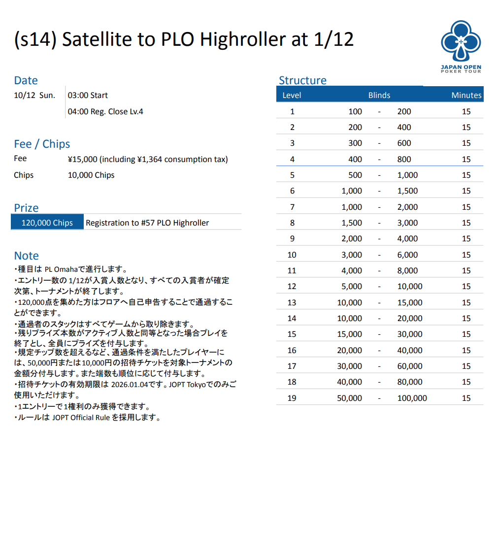 | 店舗名 | JAPAN OPEN POKER TOUR |