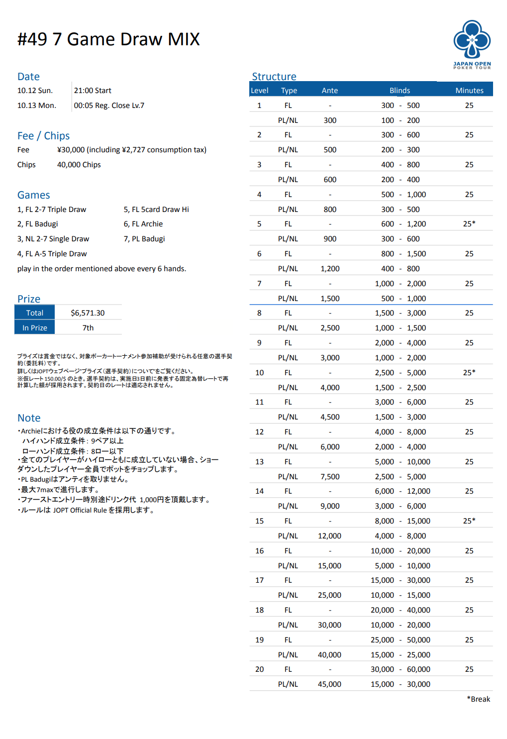 | 店舗名 | JAPAN OPEN POKER TOUR |