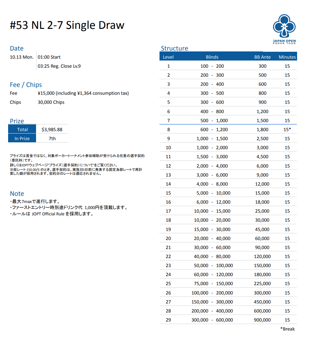 | 店舗名 | JAPAN OPEN POKER TOUR |