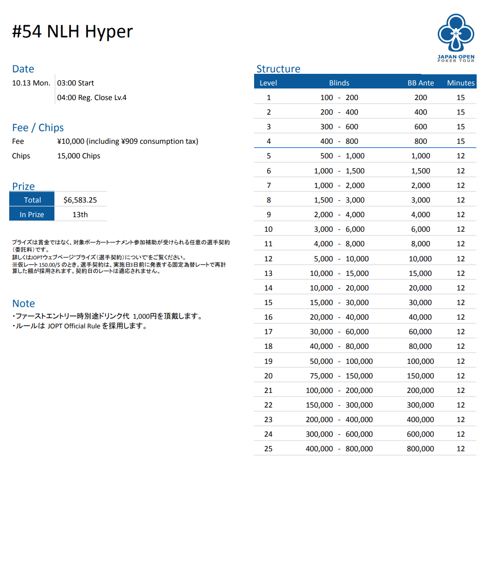 | 店舗名 | JAPAN OPEN POKER TOUR |