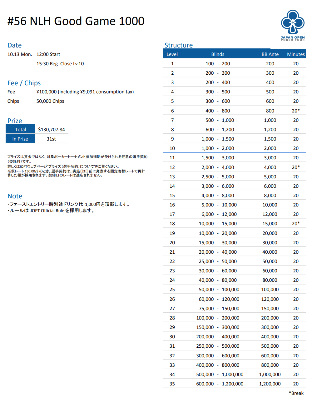 | 店舗名 | JAPAN OPEN POKER TOUR |