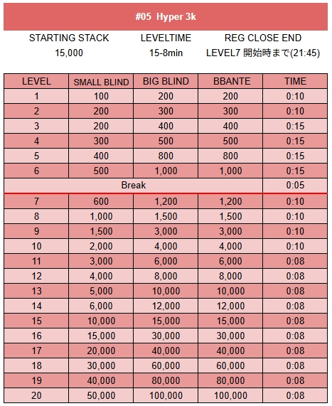 | ゲーム | 15,000点 / ノーリミット / テキサスホールデム / normal / Point |
