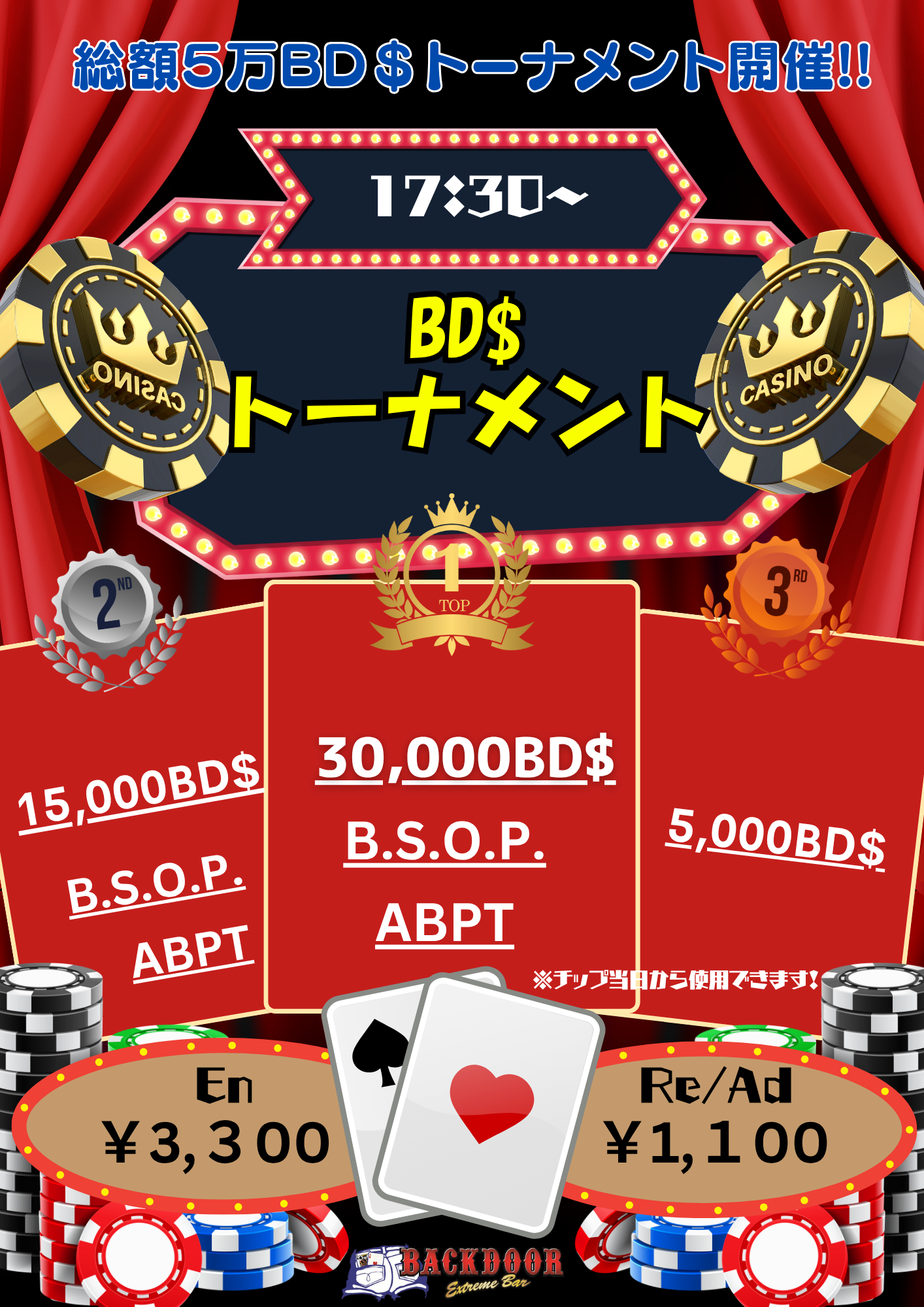 BACKDOOR全店のカジノゲームで利用可能な『ゲームチップ』を進呈♪