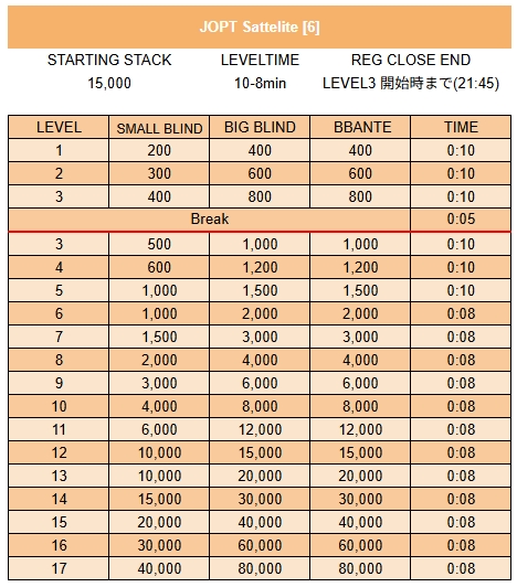 | 12/15(月) | 18:00 | 【JOPT 15Ticket】メガサテライト | Casino Live Tokyo |