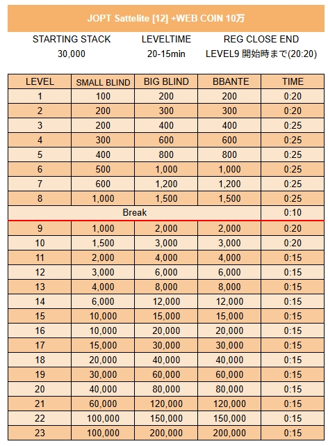 | 12/15(月) | 18:00 | 【JOPT 15Ticket】メガサテライト | Casino Live Tokyo |