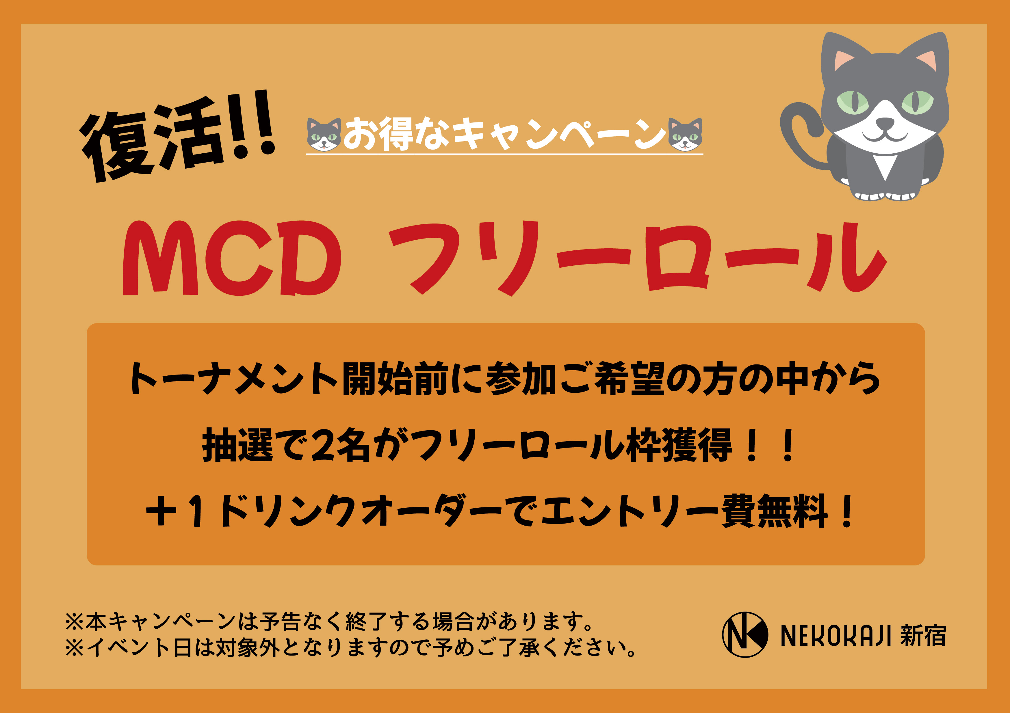 | 12/15(月) | 16:00 | 【JOPT】1000円で参加できる1卓限定 サテライト | EGP EBISU |