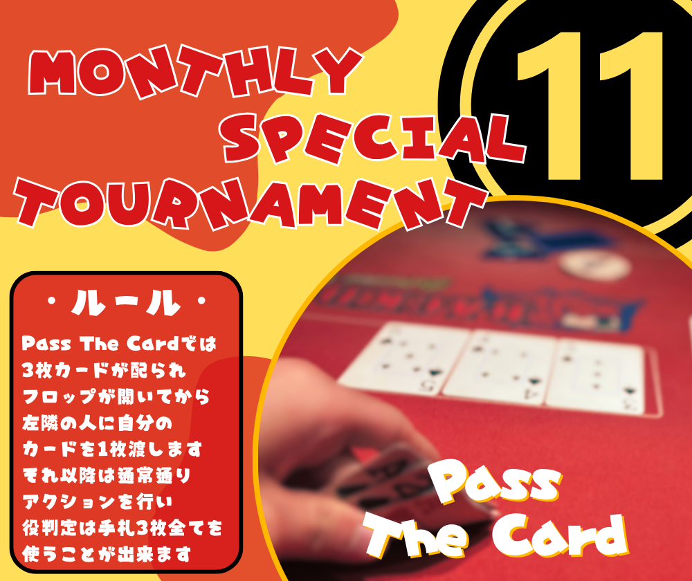 フロップが開いた後に左隣のプレイヤーに自分の手札を1枚渡します(アクション順に従って)