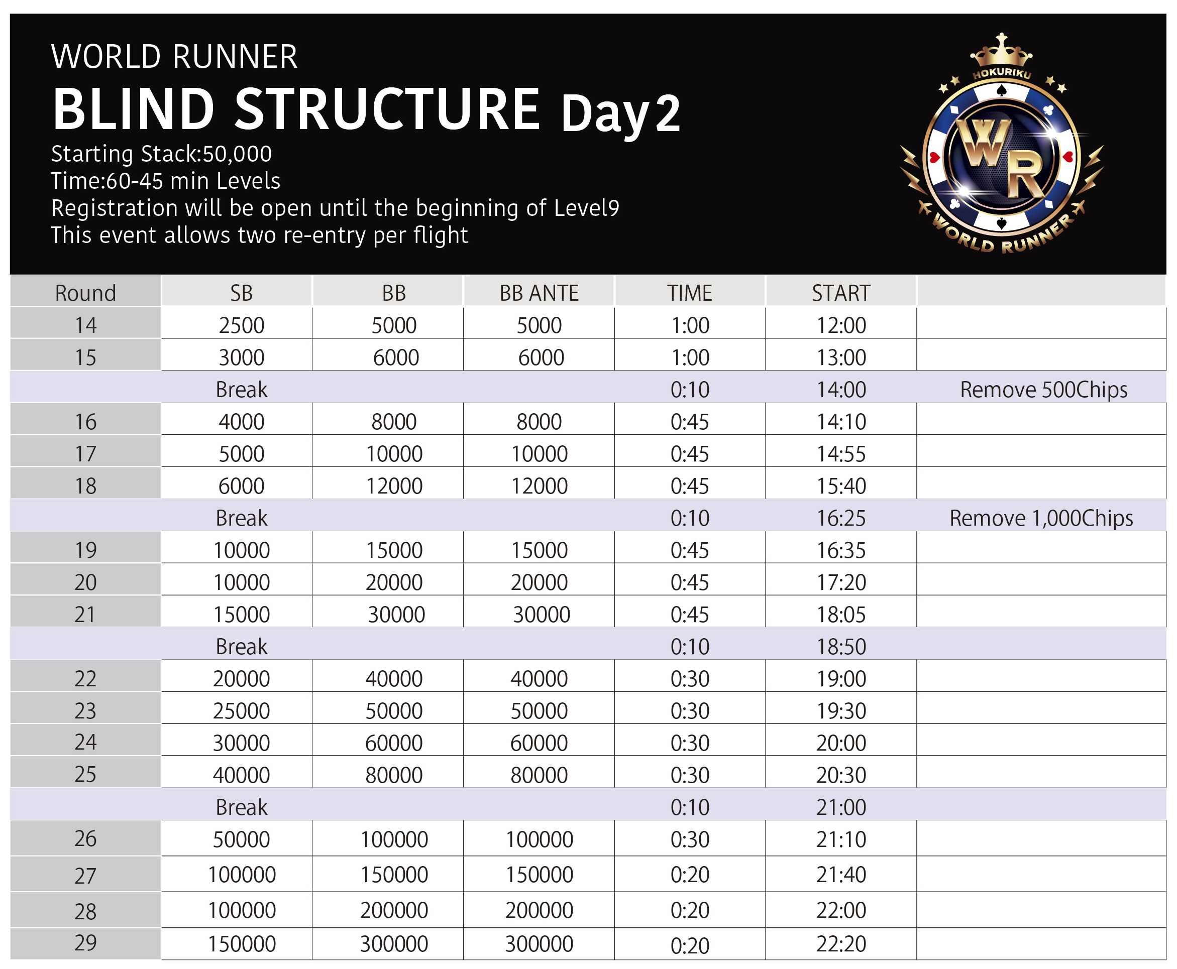 Stack 50,000 点スタート 45-60分ブラインド(変則)