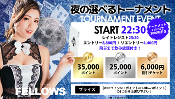1卓限定66,000保証【WEBコイン、+POINT、FELLOWSポイント、】選べるトーナメント!飛ぶまで飲み放題付き