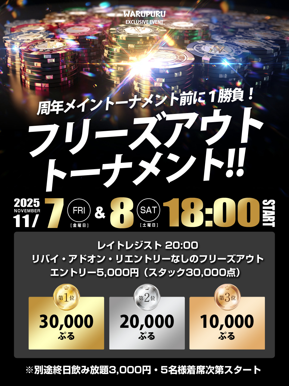 周年トナメ前に1勝負!エントリー5000円完全フリーズアウトトナメ♠