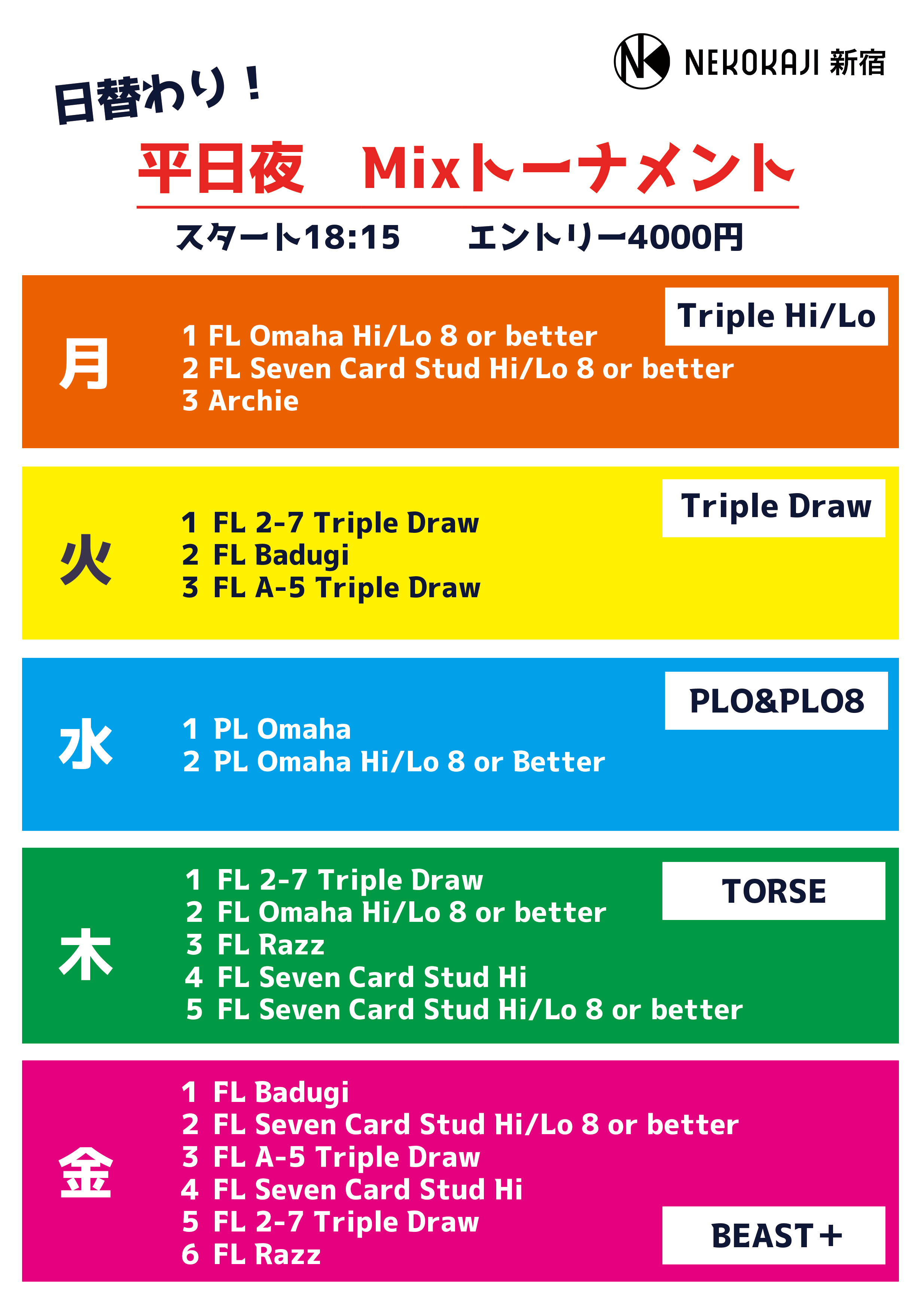 TORSE【2-7, Omaha, Razz, Stud Hi/Lo】