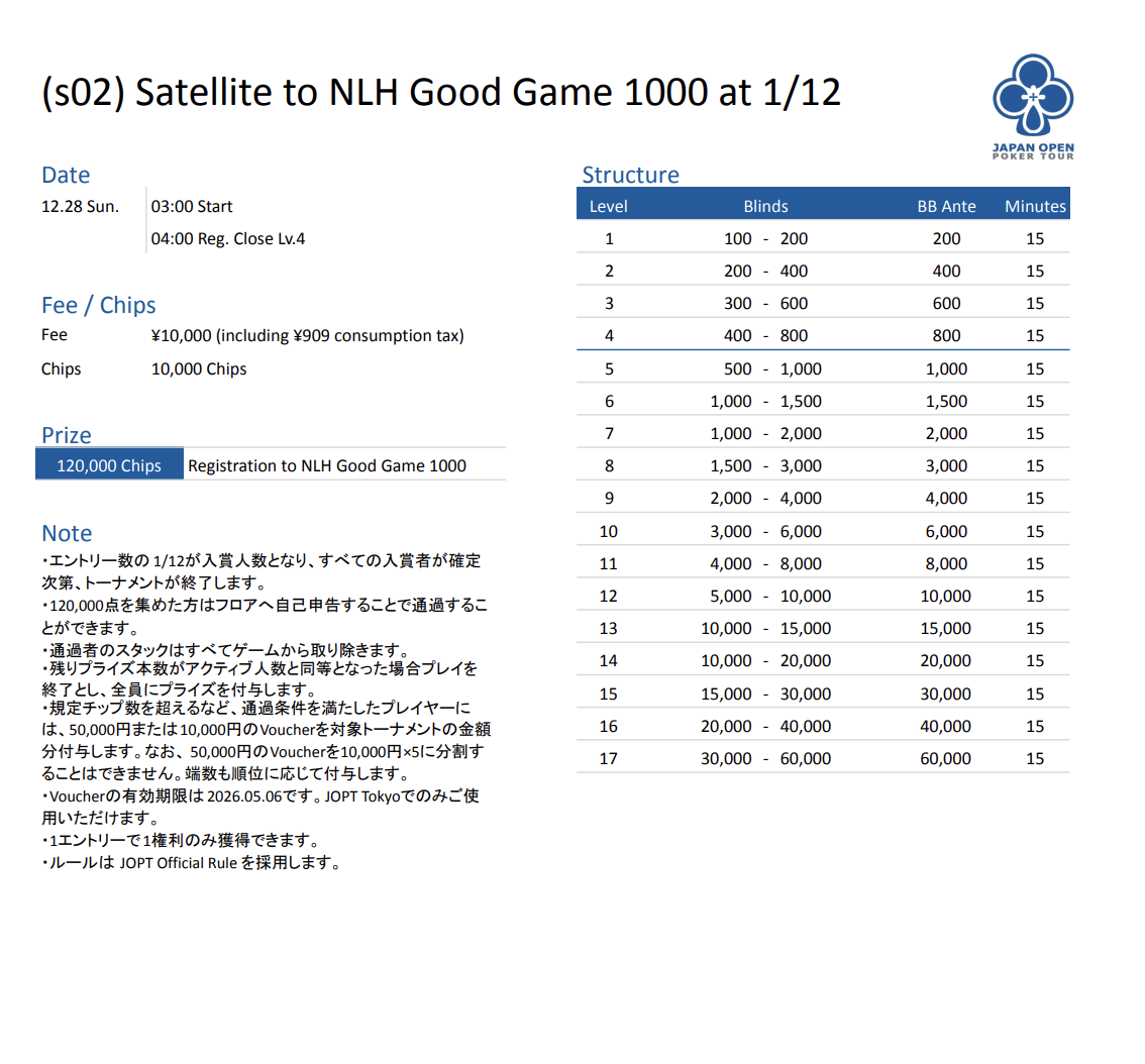 | 公式ページ | https://japanopenpoker.com/tokyo/ |