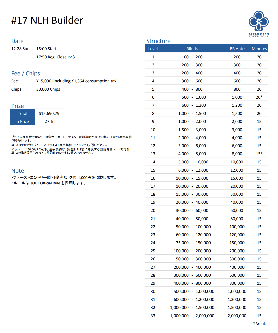 | 公式ページ | https://japanopenpoker.com/tokyo/ |