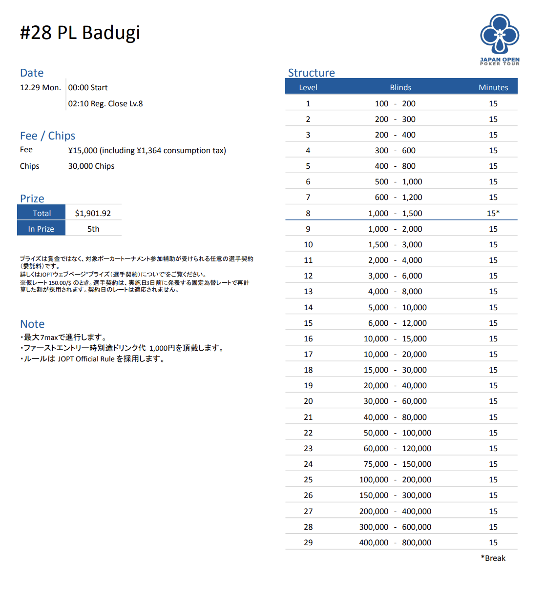| 公式ページ | https://japanopenpoker.com/tokyo/ |