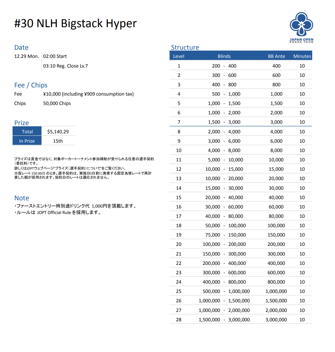 | 公式ページ | https://japanopenpoker.com/tokyo/ |