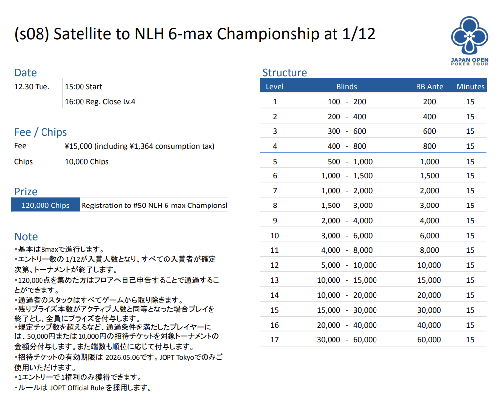 | 公式ページ | https://japanopenpoker.com/tokyo/ |