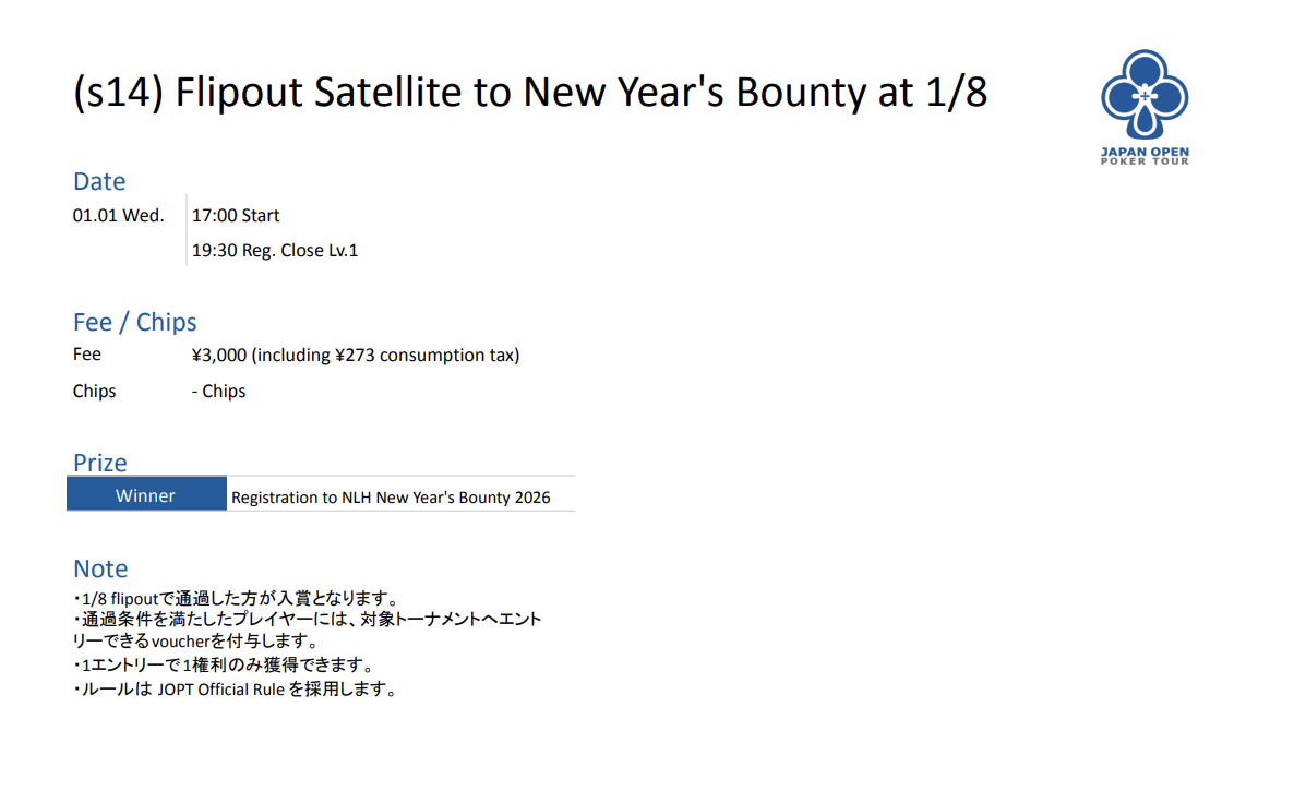 | 公式ページ | https://japanopenpoker.com/tokyo/ |