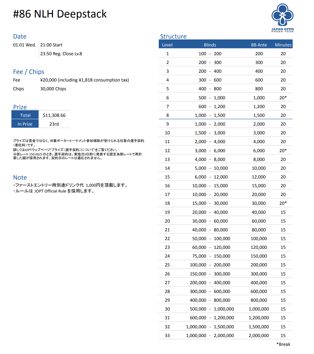 | 公式ページ | https://japanopenpoker.com/tokyo/ |