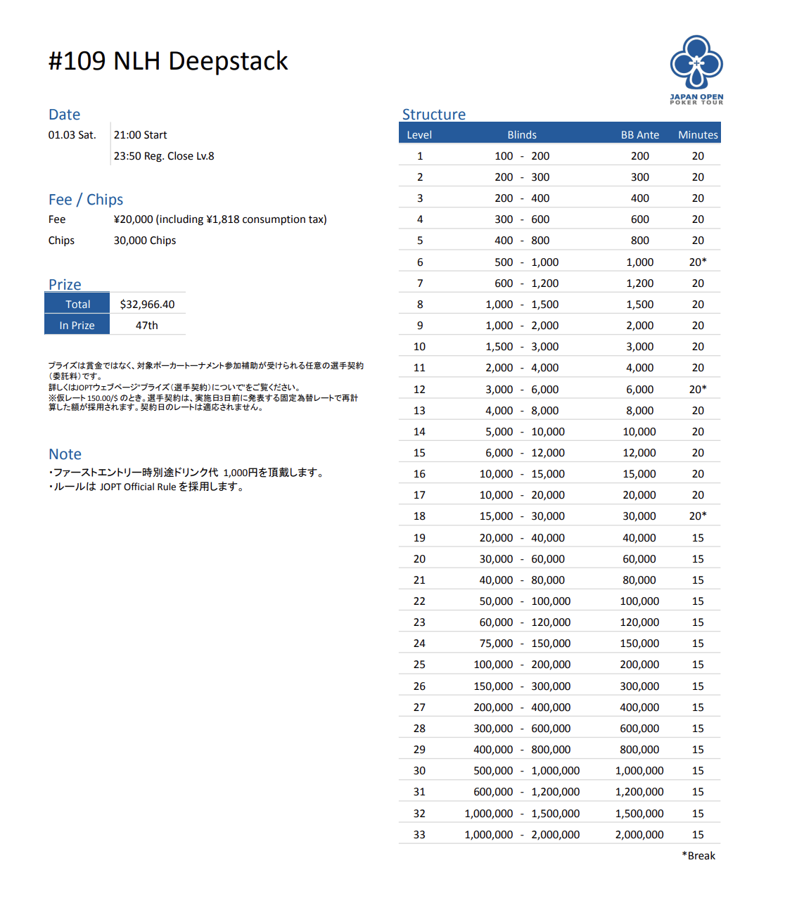 | 公式ページ | https://japanopenpoker.com/tokyo/ |