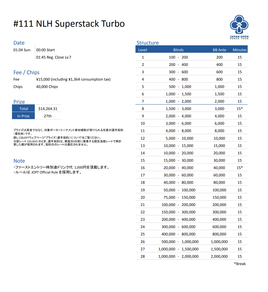 | 公式ページ | https://japanopenpoker.com/tokyo/ |