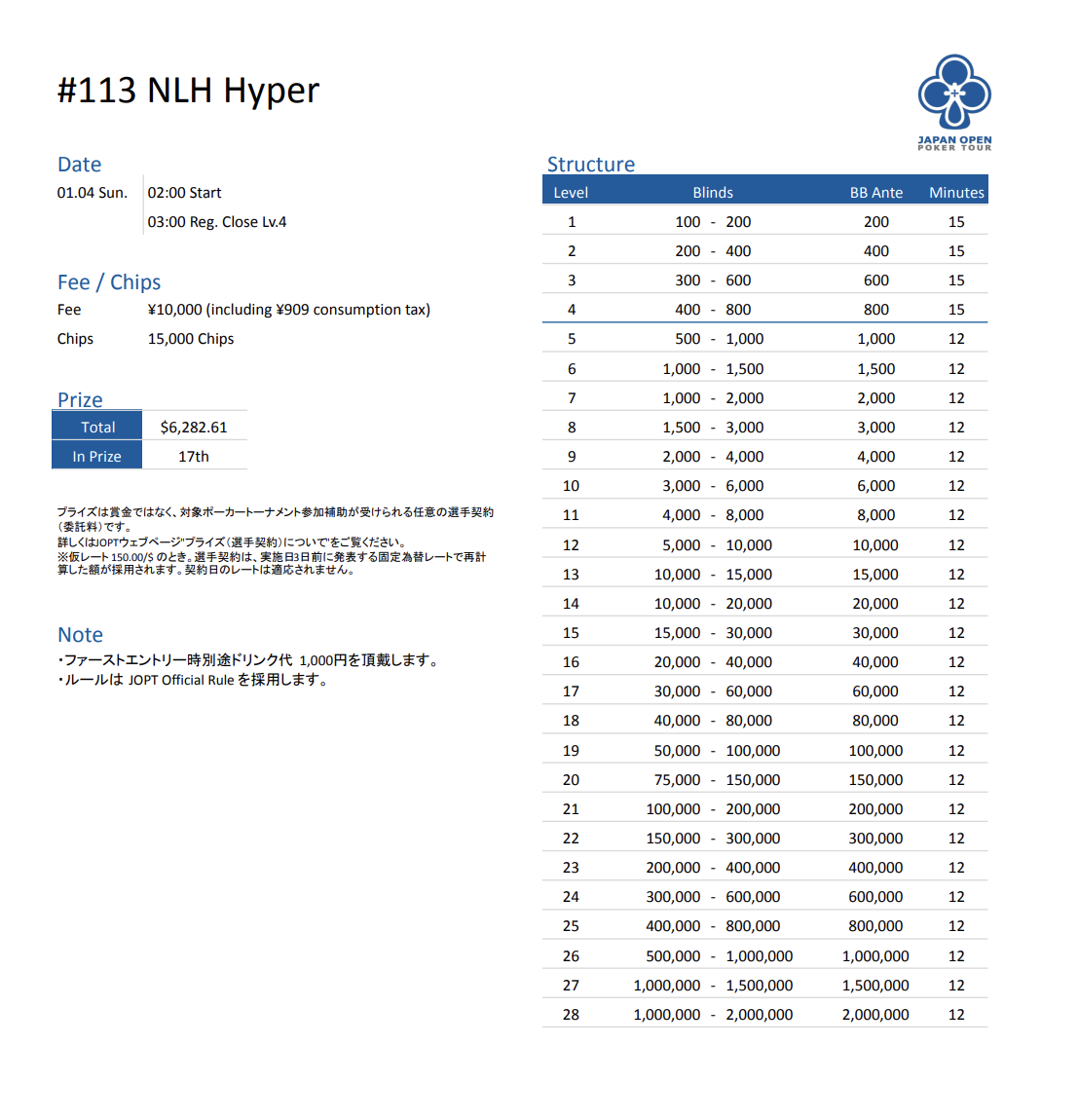 | 公式ページ | https://japanopenpoker.com/tokyo/ |