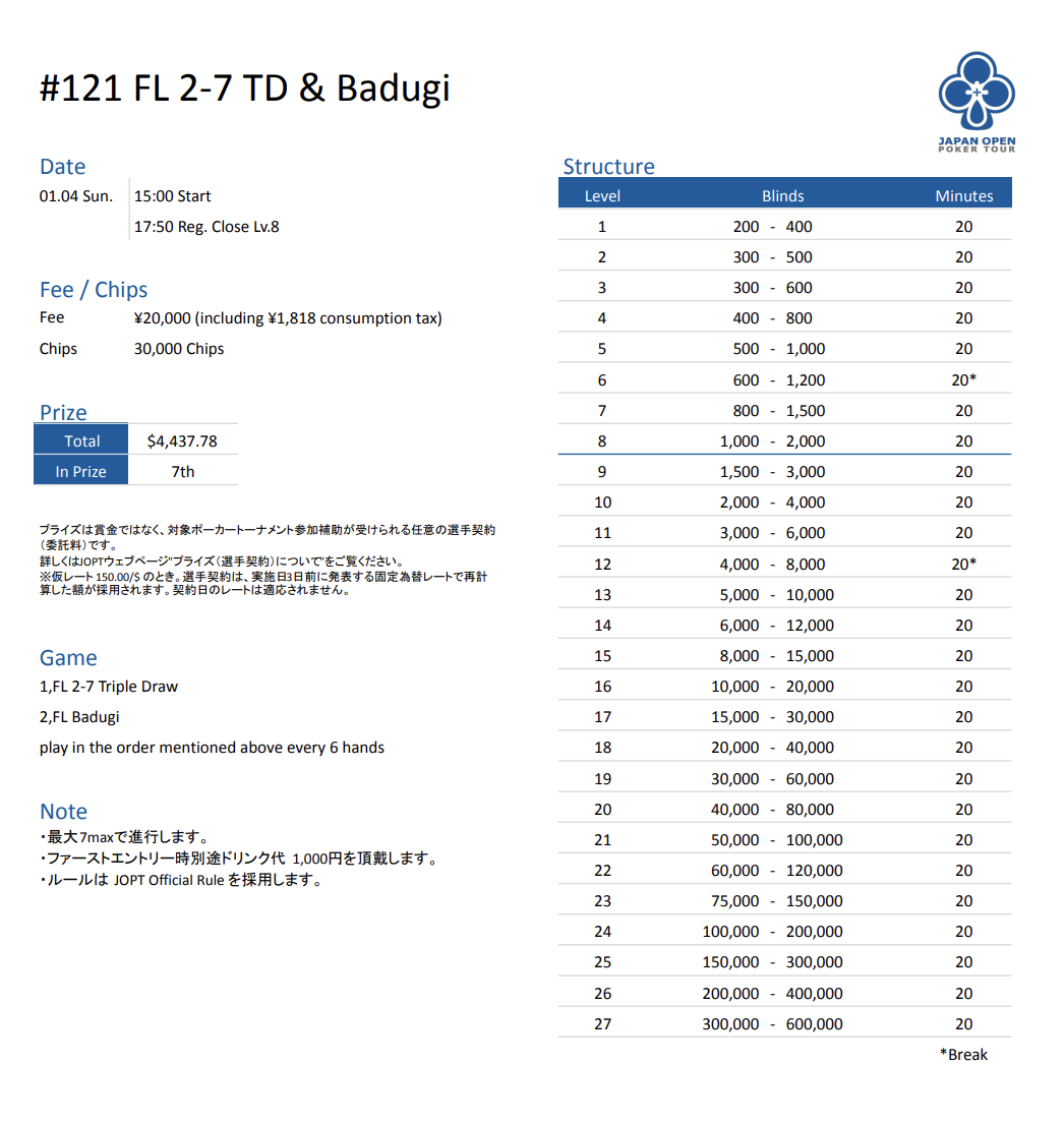 | 公式ページ | https://japanopenpoker.com/tokyo/ |