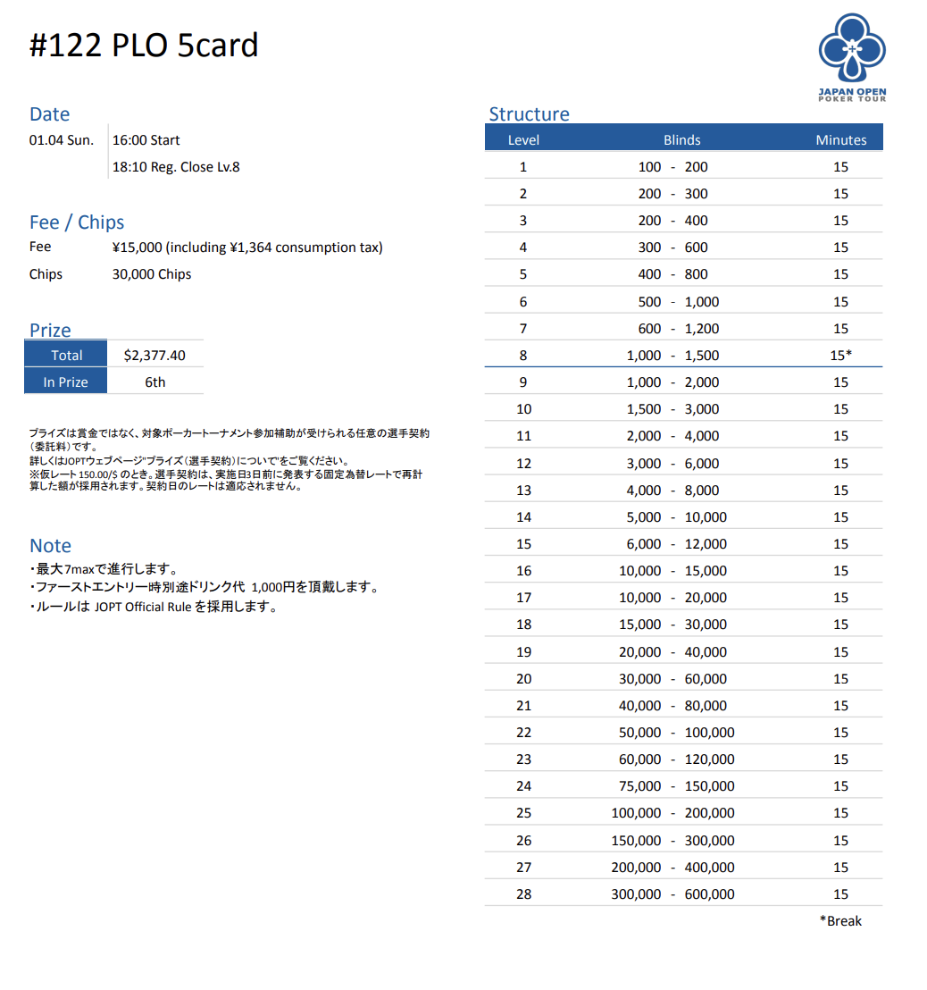 | 公式ページ | https://japanopenpoker.com/tokyo/ |