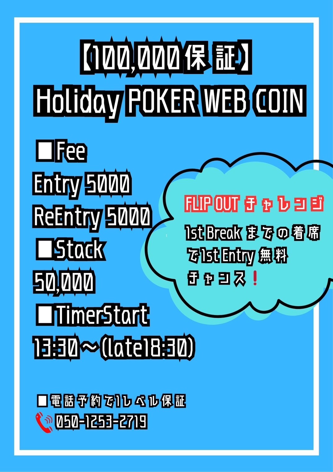 【100,000POKERWEBCOIN】ホリデースペシャルトーナメント(~20:00〆)